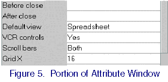Create a new Quick form registering it to table Phones (fig. 3c). This form will be used as is except for one simple but important addition. We want it to display all the phone numbers for any one person at the same time. That can be done by setting the default display to spreadsheet format. In the Attributes window scroll down to where the attribute "Default view" is visible (fig. 5). Click in the white area to the right of Default view and select spreadsheet. Close and save the form as Phone Subform.