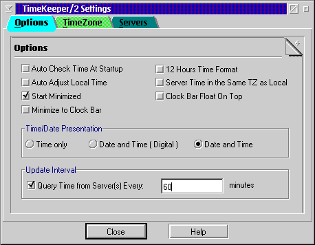 TimeKeeper/2 can be configured to run in a variety of ways: