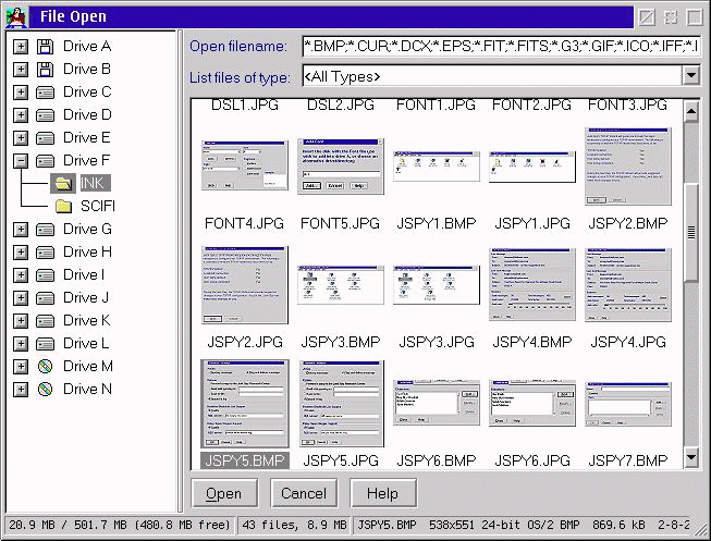 - The new file directory structure when you use the file --> open command. It displays a collapsing tree structure like FileStar with the drives and directories on the left. Handy for large drives, and you can use drag and drop to move images.