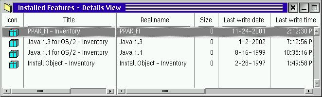 - Open the drives object for your boot drive and drill down to the \os2\Install\Installed Features folder