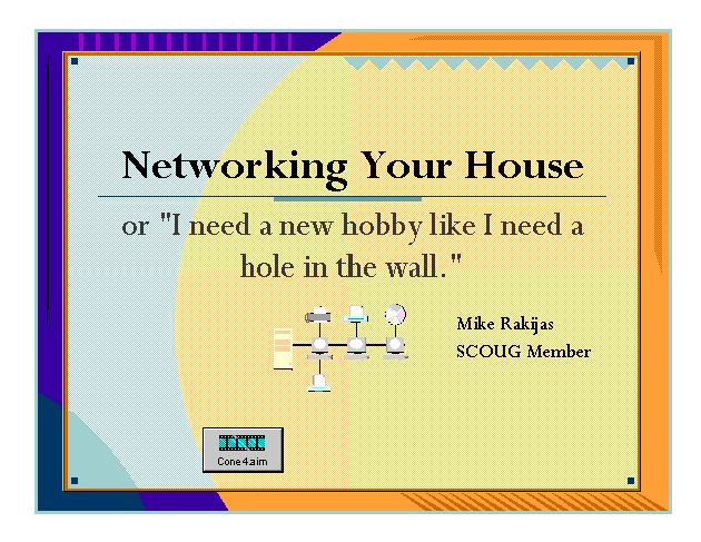 | This is a nuts and bolts kind of presentation by Mike (we all know him as Rocky) Rakijas on what it takes it network your home. It's based on actual experiences in his own home, and comes with plenty of sweat equity.