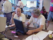 SCOUG member Dick Brainard (left) and SCOUG President Terry Warren (right) discuss how to transfer the pictures to the web site.