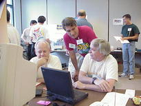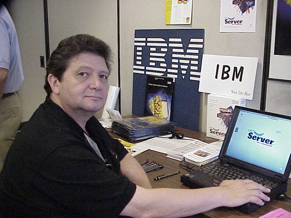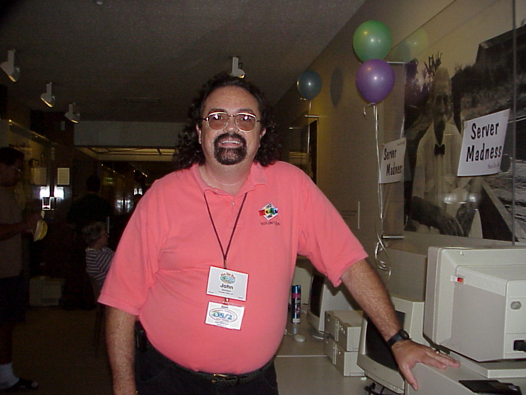 John Morrison, another SCOUG volunteer, is wearing a classic Team OS/2 t-shirt.
