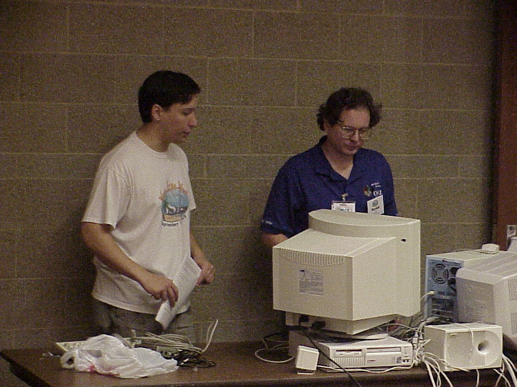 Rollin White and Randell Flint from Sundial Systems prepare for Warped Jeopardy!