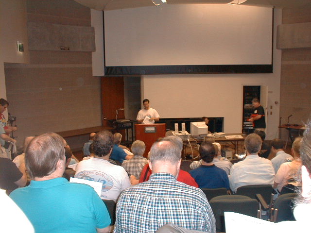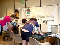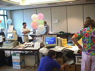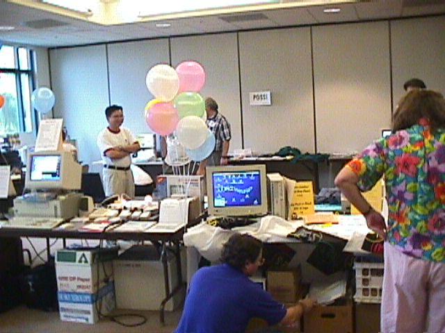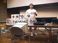 | At the closing raffle, Rollin White had his hands full. We had lots of software to give away. |