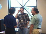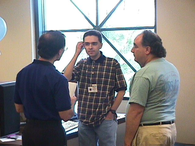 Sander Nyman (left), Julien Pierre (middle), and Mark Abramowitz (right) discuss Theta Band's products.