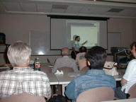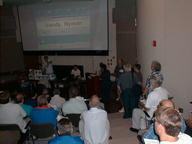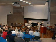 During the breaks, the halls were busy. Michael Rakijas during his presentation on Octave. Vice President Paul Wirtz spending some time behind the registration desk.
